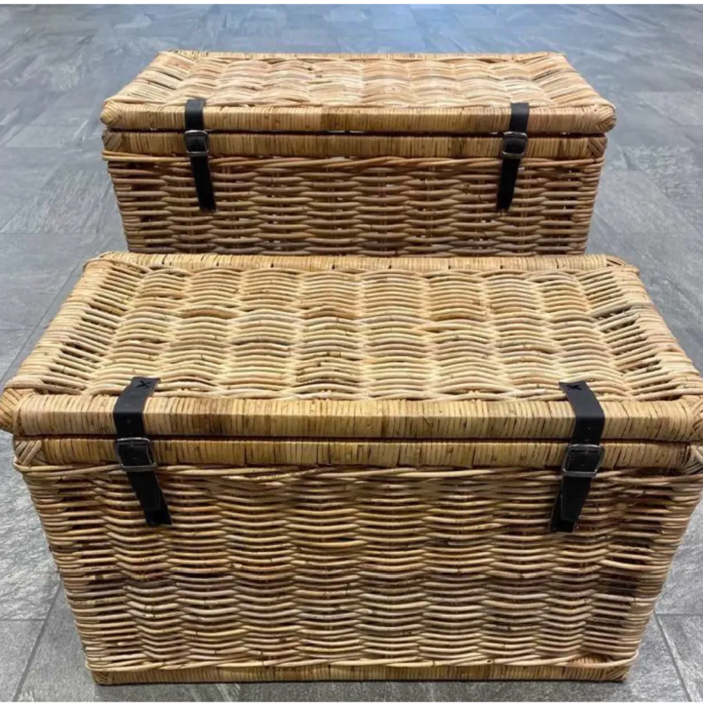 Bruksområder: Disse kurvene er ideelle for oppbevaring av tepper, puter, leker eller skittentøy. De kan også brukes som dekorative planteholdere eller som elegante piknikkurver.