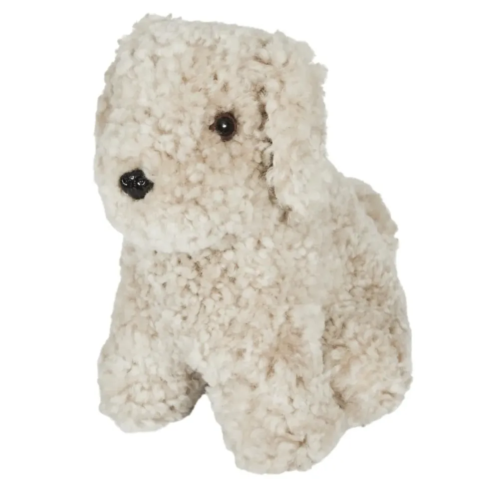 Vår aller søteste følgesvenn! Denne lille hunden er laget av klippet, krøllete fåreskinn fra Australia, og er både myk, naturlig og helt uimotståelig.