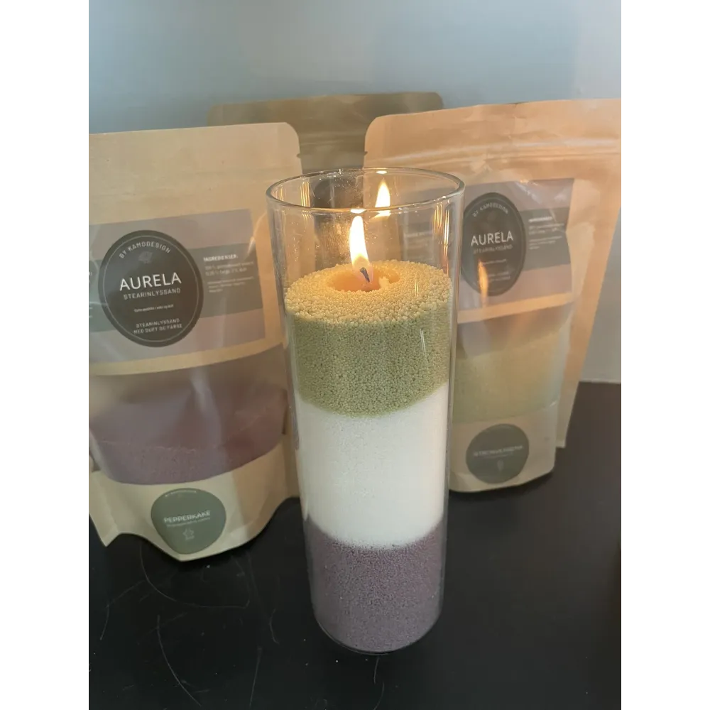 Med Aurela stearinlyssand bestemmer du selv form, farge og duft – og kan lage levende lys som passer perfekt til hver eneste anledning.