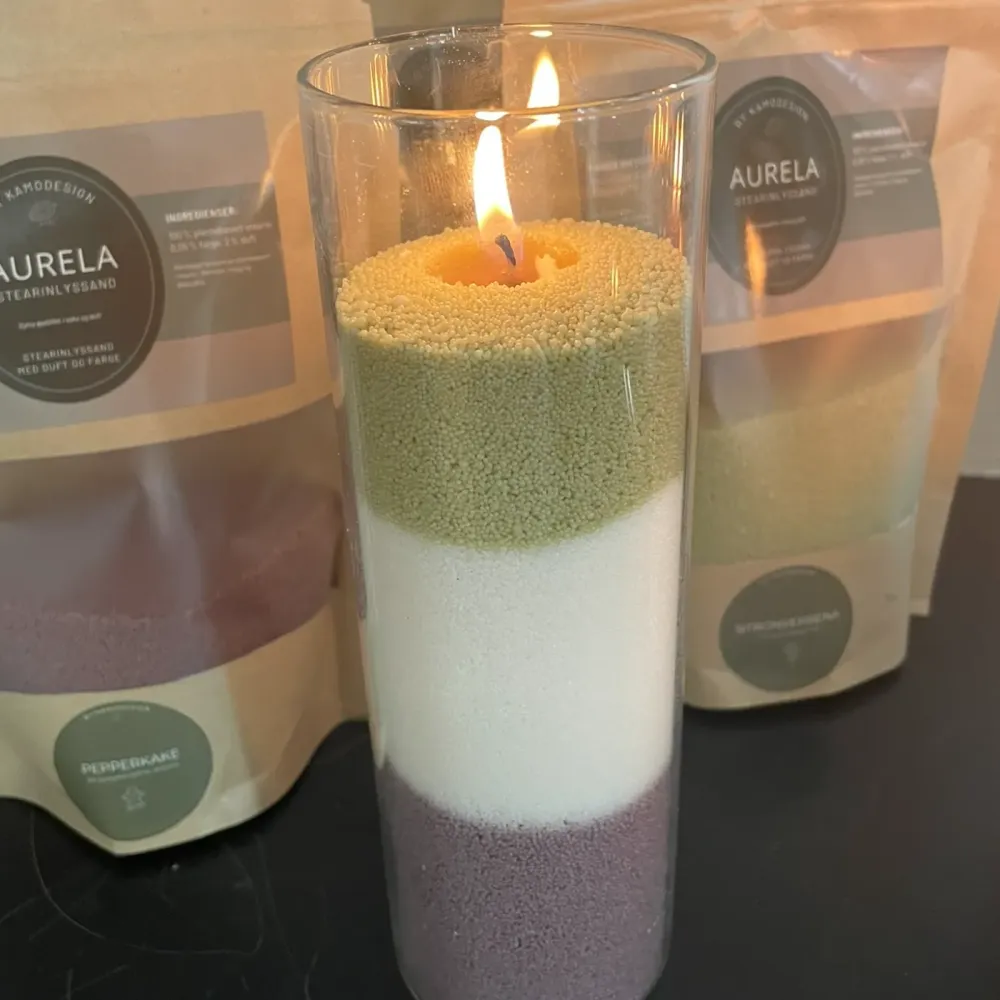 ✨ Med Aurela stearinlyssand får du lys, duft og farge i én og samme pakke – en lun og stemningsfull opplevelse, både inne og ute.