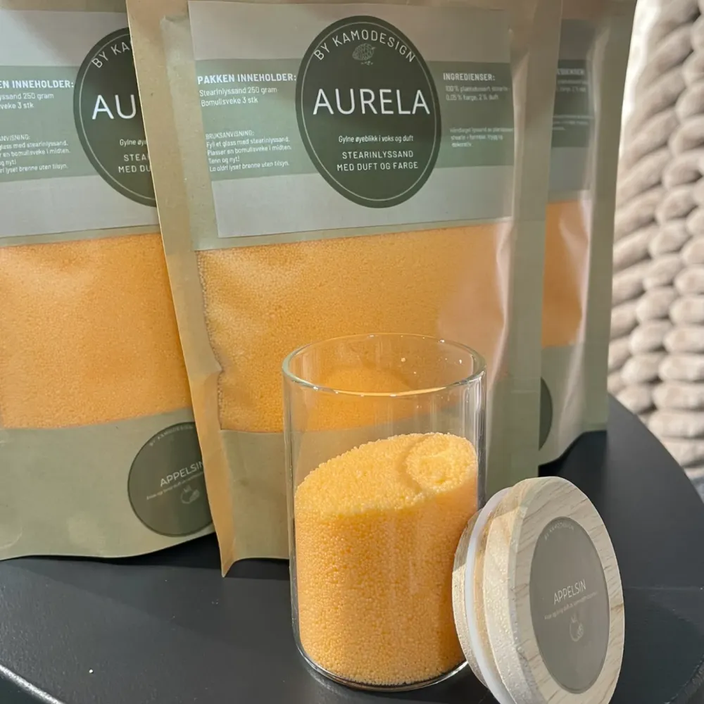 Med AURELA stearinlyssand kan du lage din egen stemning, ute eller inne – en ny og kreativ måte å tenne lys på!