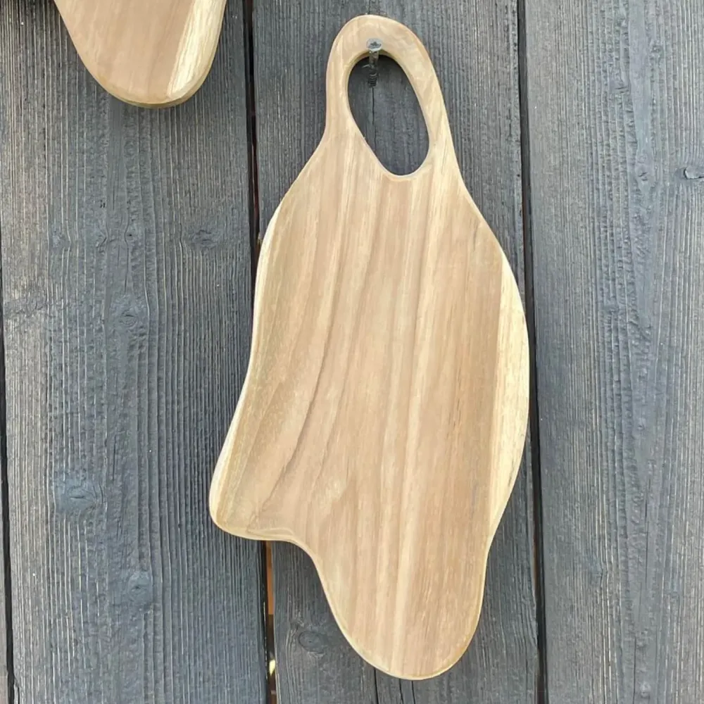 Elegant fjøl i massiv teak, formet med et naturlig, organisk uttrykk.